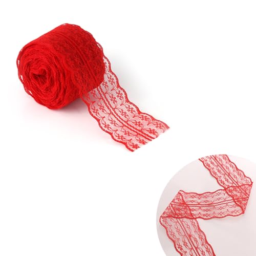 10M/Rollen Spitzenband, 4,5cm Breite Buntes Spitzenbordüre Spitzenband zum DIY Handwerk Nähen Basteln Hochzeitsfeier Dekor Kleidung(Rot)