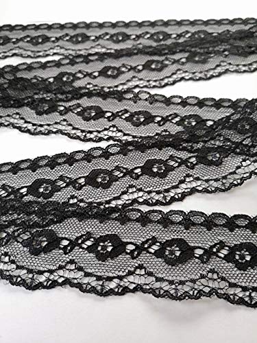 PIZZITALIANI Spitzenband SCHWARZ Höhe 3,8 cm X 20m - Spitzenbordüre, Valencienne Spitzenborte weiche, Tüll Spitze, mit Blumenmuster für Hochzeitsgeschenke Kreatives Nähen Schneiderei Dekorationen