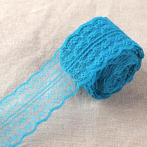 PTNKUIIY 2 Rollen Spitzenbordüre Spitzenband - 10m 4.5CM Breite Spitzenband Vintage Spitzen-Blumen Zierband Spitzenborte Häkelspitze Dekoband für DIY Nähen Handwerk Deko Scrapbooking Geschenkbox-Blau
