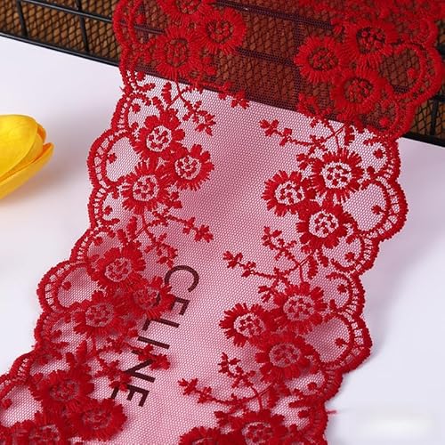 YIGOOWN Spitzenband 13cm Breite Spitzenborte Spitzenbordüre Zierspitze Spitzenstoff Dekoband Spitzen Borten Bänder zum Nähen für DIY Basteln Kleidung Handwerk Dekoration(Weinrot 20Y)