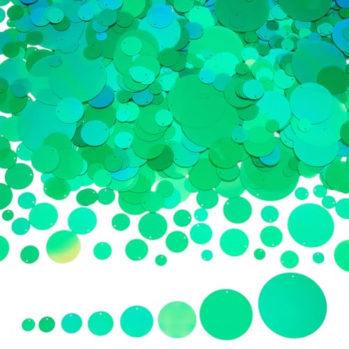 WADORN 1340 Stück 8 Größen Grün Runde Flache Pailletten, 15.2cm Lose Applikations Pailletten Verzierungs Pailletten Verschiedene Größen PVC In Großpackung Mit Löchern Ornament Für DIY Stickereien