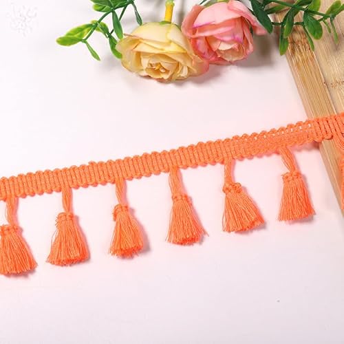 YIGOOWN Fransenborte Borte und Bänder zum Nähen 4cm Fransenbordüre Quastenborte Fransenband Fringe Ribbon Spitzenborte Dekoband für Sofas DIY BastelnVorhänge Kleidung(Neonorange 50Y)