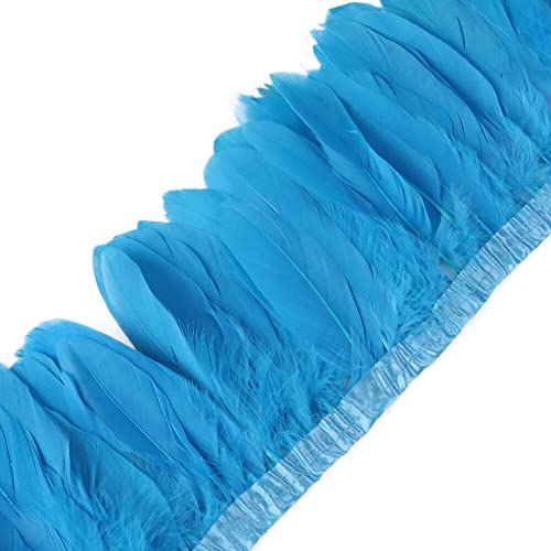 ihreesy Feder Fringe Trim Borte, 2m Federborte mit Satinband Federbesatz Feder Fransenbesatz Gänsefedern zum Basteln Federbesatz Fransen Flauschige Federfransen zum Nähen Kostüm Dekoration,Blau