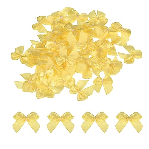 sourcing map 100 Stück Mini Satinband Schleifen 2,5cm Stoff Satinschleife Blume Bögen Ribbon Mini Band Bowtie für Handwerk Basteln Nähen Harre Hochzeit Geburtstag Party Gelb