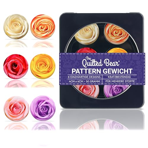 The Quilted Bear Schneidergewichte – Kratzfest Gewichte Zum Beschweren Für Nähen & Stoffe, Sewing Pattern Weights Mit Aufbewahrungskoffer (TQB – Rosen)
