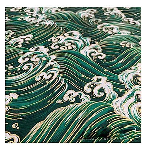 BrightGlow 100x150 cm Japanischer Stil Baumwollstoff Meterware Bunt Gedruckt Nähstoffe mit Blume Fächer Fliegender Kranich Tücher Baumwolltuch Kleiderstoff Quiltstoffe zum Nähen Grün-Wellen