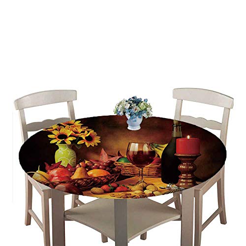 Chickw1 Tischdecke Runde Wasserdicht Abwaschbar Lebensmittelmuster Tischschoner Elastische Kante,Tischtuch aus Polyester für Küche, Esszimmer, Garten, Balkon oder Camping (Abendessen,120cm)