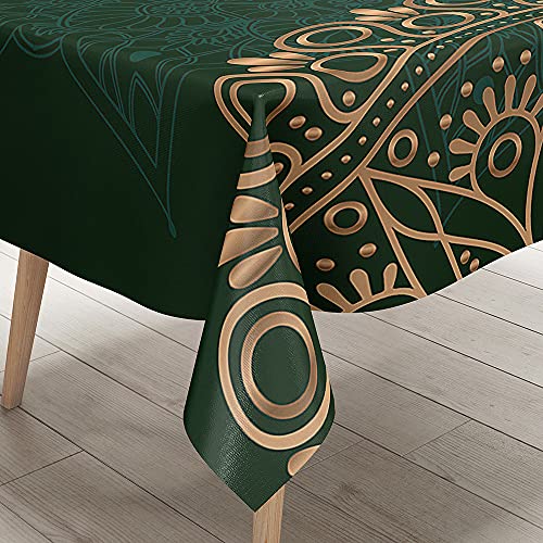 Hearda Tischdecke Abwaschbar Rechteckig, Mandala-Druck Polyester Tischdecken Wasserdicht Pflegeleicht Tischtuch für Küche Party Outdoor Garten Restaurant (Dunkelgrünes Gold,120x120cm)