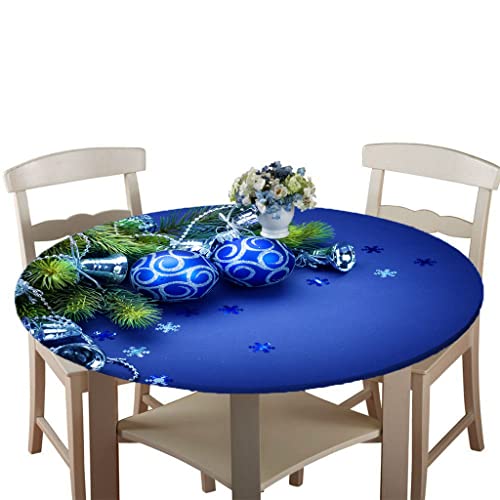 Treer Weihnachtstischdecke Runde Tischdecke Abwaschbar, 100% Polyester Outdoor Tischdecken Antifouling Wasserdicht Lotuseffekt Tischdecke Weihnachten Home Küche Party (Blaue Schneeflocken,120cm)