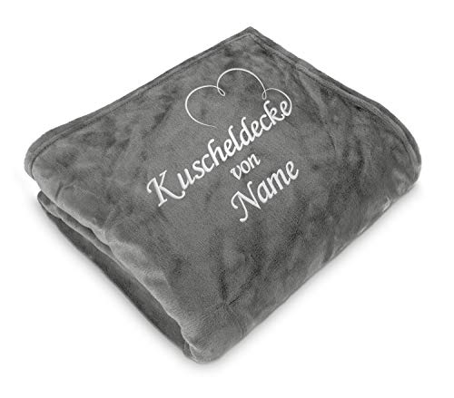Direkt-Stick.de Kuscheldecke Bestickt mit Namen, 150 x 200 cm, Wohndecke Personalisieren mit Stickerei, Decke selbst gestalten, Romantisches Namensgeschenk mit Herz (steingrau)