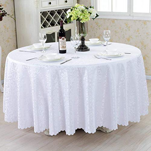 GJBHD Runde Damast Jacquard Tischdecken,Volltonfarbe Polyester Tischtuch Verschüttungssicher Tischbezug Für Restaurant Hochzeitsbankett -weiß Rund 200cm
