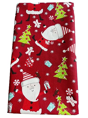 Jukway Baumwollstoff Meterware Weihnachten Deko Stoffe zum Nähen, Reine Baumwolle Stoff für DIY Dekoration Tischläufer Tischdecken Tischband Handwerk (37 x190 cm, Rot)