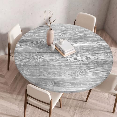 Morbuy Elastische Tischdecke Wasserdicht, 3D Holzbrett Muster Tischdecken mit Gummizug Rund Tischtuch Abwischbar Gartentischdecken Tischschutz für Party Küche (Hellgrau,Durchmesser 130cm)