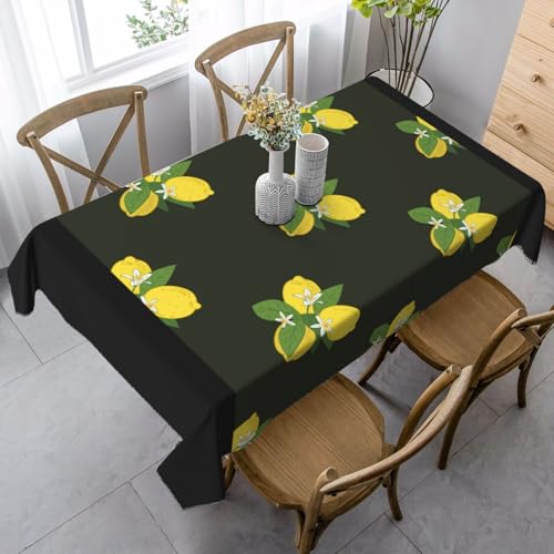 Tischdecke mit Zitrone und Zweig und Lilienstrauß, Schwarz, 88,9 x 139,7 cm, rechteckig, wasserdicht und staubdicht