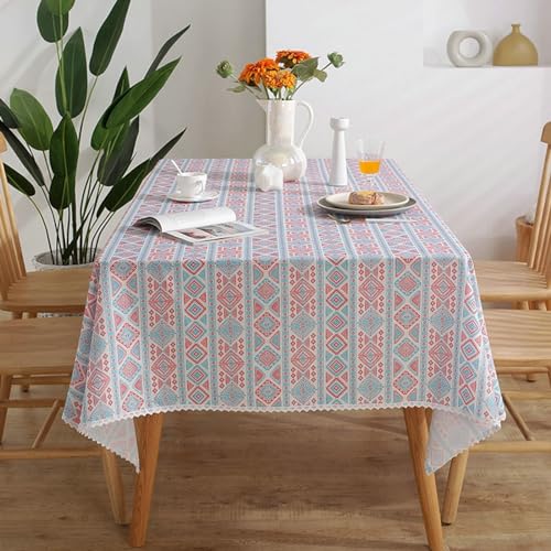 Beydodo Tischdecken Outdoor Eckig, Tischtuch 140x180CM Boho mit Spitze Bedruckt Geometrie Muster Tischdecke Abwaschbar für Draußen