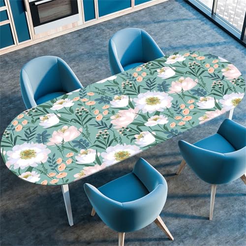 Highdi 3D Elastische Tischdecke Oval Abwaschbar, Spanntischdecke Oval Gartentischdecke Outdoor Tischdecke mit Gummizug für Esszimmer, Küche (Einfache Blume 5,122x183cm)