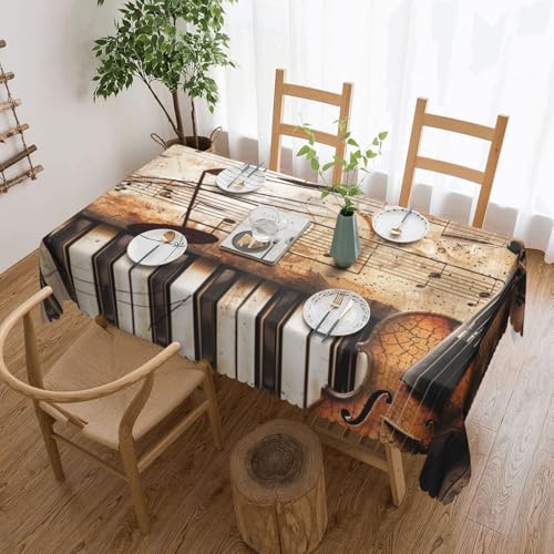 KCGSDEGV Rechteckige Tischdecke mit Klavier- und Violinen, bedruckt, 183 x 137 cm, wasserdichte Stoff-Tischdecke, waschbare Tischdecken für Küche, Esszimmer, Party