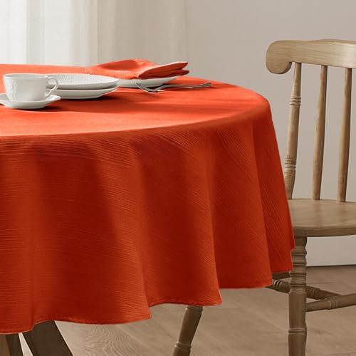 Softalker Tischdecke Herbst rund 160 Rostrot Leinen Struktur abwaschbar Wasserabweisend Abwischbar Fleckschutz Tischtuch Tablecloth Deko für Outdoor Draußen Party Geburtstag Garten Autumn Winter