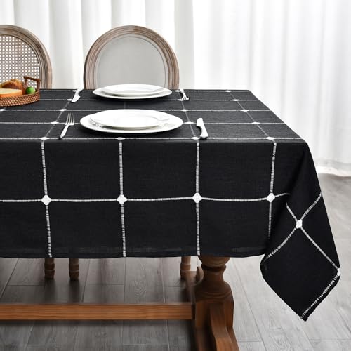 Plenmor Leinen Tischdecke Abwaschbar Schwarz 220x135cm, Leinenoptik Tischdecken Baumwolle Halloween Tischdecke Rechteckig für Küche,Garten,Party,Herbst