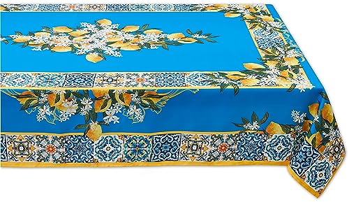 YiHomer Mittelmeer-Tischplatte in der Provence-Blau-Zitrone, für Frühlings- und Sommerdekorationen, Picknicks und Dinner-Partys – drinnen und draußen, flecken- und wasserabweisend, Tischdecke, 178 cm,
