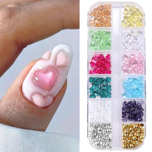 1Kiste Herz Nail Charms Harz Nail Crystals Strasssteine Herzen Charms Nägel Halb Nail Beads Nagel Perlen Heart Nagel Charms Bunt Resin Hearts Nägel Charms Nageldesign Nagel Zubehör Nail Art Nailart