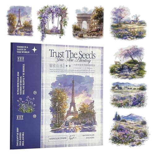 Unser Scrapbook Sticker Book im Landschaftsdesign bietet eine beeindruckende Auswahl von fast 385 einzigartigen Sticker Motiven auf 50 Seiten. Die Designs dieser Scrapbooking Sticker zeigen Naturlandschaften mit Bergen, Flüssen, Bäumen und vielem mehr. Vom Frühling mit blühenden Blumen bis zum schneebedeckten Winter lässt sich jedes Thema mit unseren Landschafts Stickerbuch perfekt umsetzen Scrapbook Aufkleber bestehen aus hochwertigem Washi Papier. Die einzigartigen Eigenschaften von Washi Sticker sind lange Fasern, gute Zähigkeit und Reißfestigkeit. Unsere Bullet Journal Sticker werden mit einer Rendering Technik gedruckt, die natürliche und sanfte Farben erzeugt. Dieses Scrapbook Zubehör eignet sich perfekt für Scrapbooking, Bullet Journal Aufkleber, Junk Journal ,Fotoalbum und mehr. Jeder Aufkleber in diesem Scrapbook Sticker Buch ist präzise vorgestanzt, sodass Sie die Journal Sticker sofort abziehen und anbringen können. Unsere Landschaft Sticker eignen sich perfekt für die meisten glatten Oberflächen, sodass Sie Ihre eigenen einzigartigen Designs erstellen können, um Handyhüllen, Laptops, Gepäck, Skateboards usw. zu dekorieren. Unsere Scrapbook Sticker Bücher werden in einem praktischen Buchformat geliefert, sodass Ihre Scrapbook Sticker ordentlich aufbewahrt und kategorisiert werden können. Wenn Sie Ihr Bullet Journaling oder Scrapbooking unterwegs mitnehmen möchten, kann ein Buchdesign den nötigen Komfort bieten. Unsere aesthetic sticker sind das perfekte Scrapbooking Zubehör für alle, die ihre Kreativität auch unterwegs ausleben möchten. Niedliche Sticker können schöne Erinnerungen in Fotoalbum hinterlassen, bei Teenagern die Neugier auf Ästhetik wecken und bei Erwachsenen die Kindlichkeit bewahren. Unsere Journal Sticker können Ihre Kreativität anregen und Ihrer Fantasie freien Lauf lassen