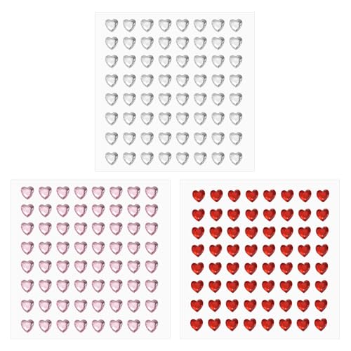 PATIKIL Herz-Edelstein-Aufkleber 6mm, 3 Blatt Selbstklebende Acryl-Herz-Rhinestone-Juwelenaufkleber Kristallverzierungsbogen für Basteln Nageldekoration Make-up DIY, Weiß/Rosa/Rot