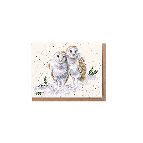 Wrendale - XGE017 - Weihnachten Grußkarte, Doppelkarte mit Umschlag, Mini Karte, Eulen, White Christmas, 7,2cm x 9cm