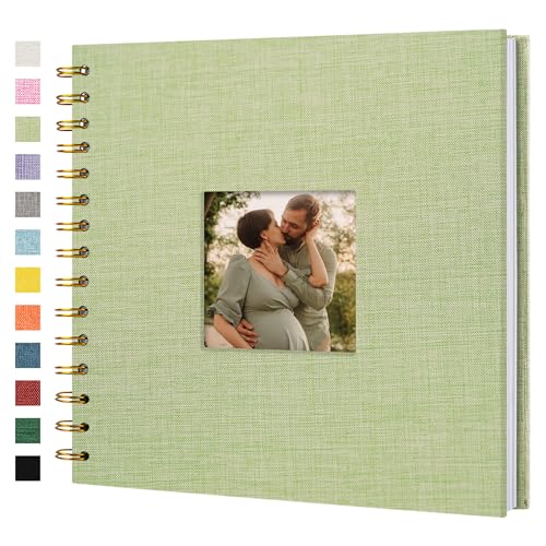 Hiwhy Scrapbook Fotoalben Leineneinband 20,5x20,5 cm 40 Seiten Hardcover Kraft Weiß Seiten Erinnerung Scrapbooking Buch für Hochzeit Reise Baby Dusche Gästebuch, Grasgrün