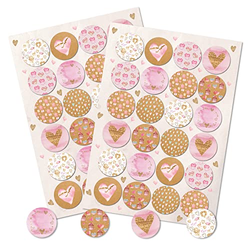 Logbuch-Verlag 48 runde Herzaufkleber 4 cm rosa braun - Herzchen Sticker - Bastelzubehör Verzierung Give-Away Mitgebsel