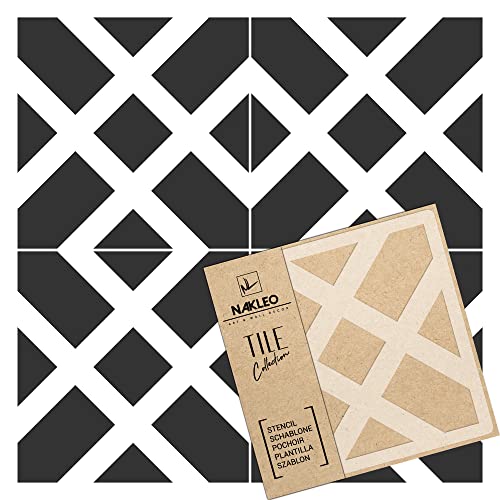 NAKLEO Fliesen Schablone zum Malen 25x25 cm, Havana Geometric Mosaic, Kunststoff Wiederverwendbare Bodenschablone DIY, Holz Möbel Wand Dekoration