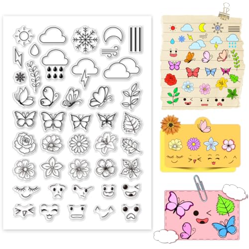 PH PandaHall Journal Klarer Stempel Blumen Blätter Silikonstempel Schmetterling Transparenter Stempel Wetter-Gummistempel für Journaling Card Making DIY Craft Kalender Scrapbooking Notebook 16x11cm