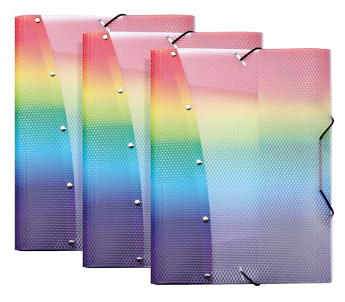 VELOFLEX 4442404-3 - Sammelmappe Rainbow Diamond, DIN A4, 3 Ordnungsmappen mit Gummizug, strapazierfähig, Jurismappe aus PP