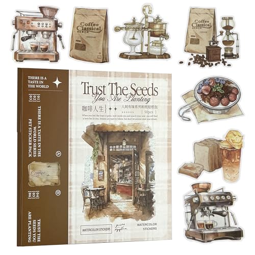 Kraeoke 50 Blatt Scrapbook Stickerbuch Kaffee Sticker Washi Stickers Set Scrapbook Zubehör für Fotoalbum Bullet Journal Scrapbooking (Kaffee)