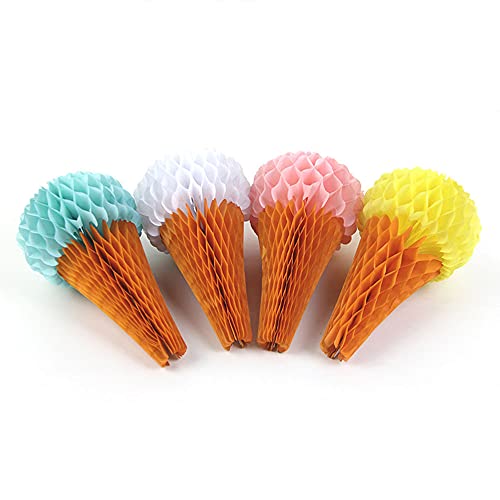 ANCLLO 4 Stück Party Hängende Eiscreme Seidenpapier Honeycomb Eiscreme Kleiderbügel Hochzeit Geburtstag Party Dekoration