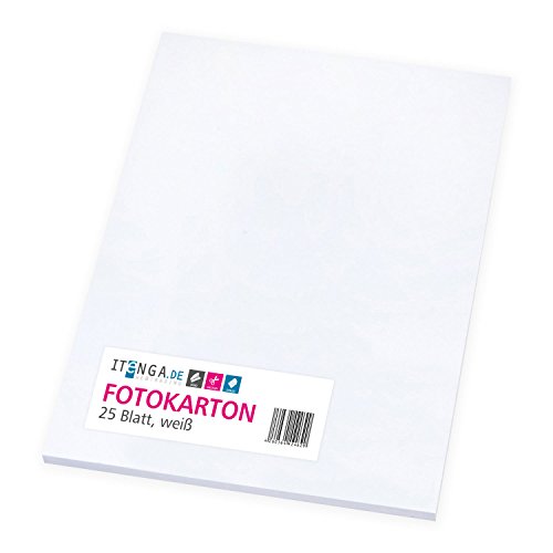itenga Fotokarton 25 Blatt A4 300 g/qm - Tonpapier Tonkarton Druckerpapier Bastelpapier Bogen durchgefärbt zum kreativen Gestalten und Basteln (Weiss)