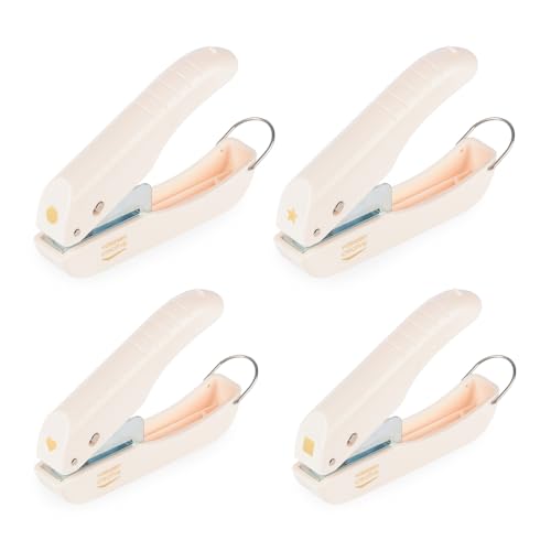 PAPIERSTANZER - Mit dieser praktischen Stanzzangen können Sie ganz einfach Formen aus Papier ausstanzen. Verzieren Sie all Ihre Scrapbooks und selbstgemachten Karten KARTEN GESTALTUNG - Der Lochstanzer ist perfekt für das Basteln von Geschenke. Stanzen Sie die Motiven in Bastelpapier, Korkpapier, Scrapbookpapier, Decoupagepapier, Moosgummi, dünnem Karton oder Filz BENUTZERFREUNDLICH - Dank der Softgrip Beschichtung der Griffe sind die Stanzzangen mühelos verwendbar. Sie sorgt immer wieder für perfekte Ergebnisse und liefert jedes Mal schöne Stanzungen HOHE QUALITÄT - Die Einzellöcher stanzen sauber und einwandfrei. Hergestellt von Stahl und Plastik. Um die Stanzzange zu schleifen, stanzen Sie am besten einige Male durch Alufolie INHALT - Dieses Paket enthält 4 Stanzzängen für Papier bis 250 g/m² geeignet. Die ausgestanzten Figuren (Kreis, Sterne, Viereck und Herz) sind 6,4 x 6,4 mm groß. Sie hat einen Stanzbereich von 22 mm