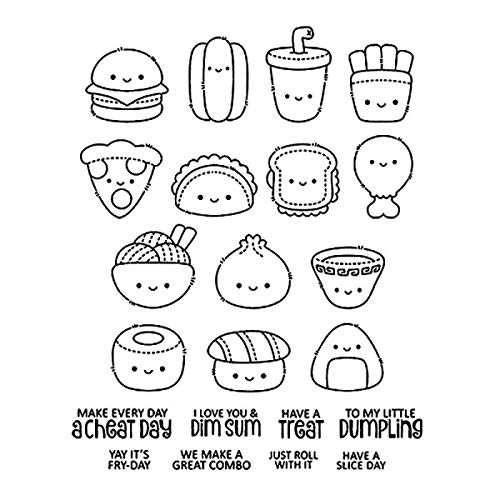 CYFUN DESIGN Essen Nudeln Hamburger Pizza Chips Beste Wünsche Freundliche Phrase Grüße Worte der Ermutigung Silikon Klarstempel für Kartenherstellung und DIY Scrapbooking Paper Crafts