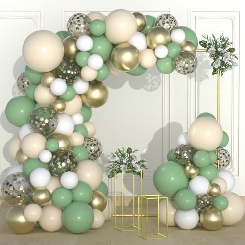 Salbei grün Ballon Girlande Kit Bogen - Olivgrün und Weiß Gold Ballons für Jahrestag Oh Baby Shower Geburtstag Hochzeit Graduierung Bridal Shower Party Dekorationen