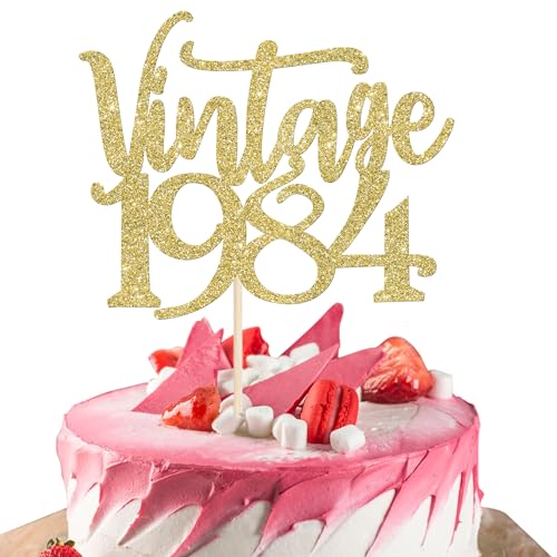 1 Stück Vintage 1984 Tortendeko Vierzig Awesome Since 1984 Kuchen Deko Happy 40 Fabulous 1984 Cake Topper für 40th Geburtstag Hochzeit Jahrestag Party Torten Dekorationen Gold