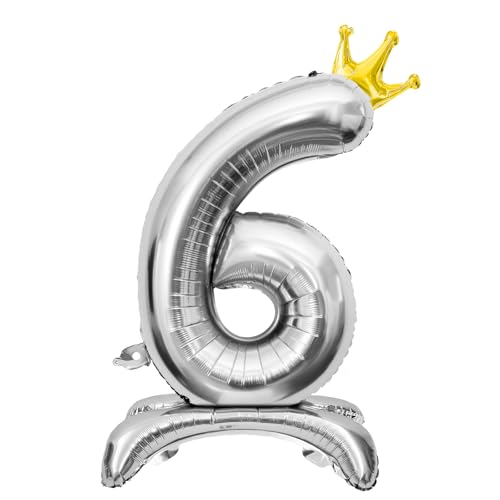 Luftballon 6. Geburtstag, Stehend Folienballon 6 Zahlen Luftballon Silber 32"/81cm Folienballon Geburtstag Deko Junge Mädchen