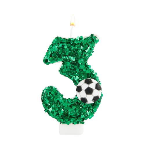 Geburtstag Zahlen Kerzen, Grün Geburtstagskerzen Fußball mit Glänzenden Pailletten Zahlen Kerzen Fußball Kuchenaufsatz für Geburtstagsfeiern Jubiläen Feiern (Nummer 3)