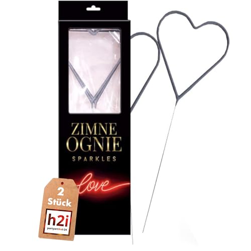 h2i Herz-Silber Wunderkerzen | 2 Stück | 25 cm | +/- 100 sek | Geburtstagskerzen Sprühkerze Spritzkerze Sternenspritzer Funkenzauber für Valentinstag Hochzeit Silvester Geburtstag | Kat F1