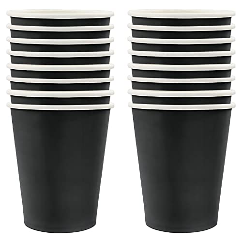 250ml Schwarz Papier Partybecher,16 Stück Schwarz Pappbecher,Trinkbecher Hochzeit Einwegbecher Disposable Cups für Hochzeit,Kinder DIY,Partybedarf,Tee,Heißen und Kalten Getränken Einwegkaffee Becher