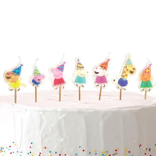 Amscan 9918346 – Peppa Pig Kindergeburtstag Partykerzen auf Holzplektren – 7 Stück