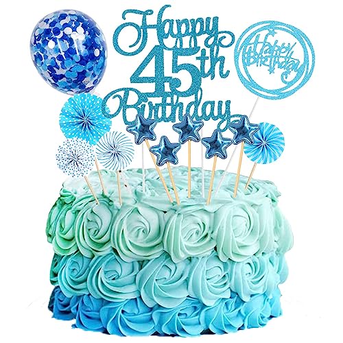 Jxuzh Tortendeko 45 Geburtstag Blau Frau Männer Happy Birthday 45 Glitter Cake Topper 45.kuchendeko Geburtstag Happy 45th Birthday Tortendeko 45 Jahre Geburtstag Kuchen Deko 45 Geburtstag Frau Blau