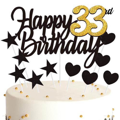 Ouceanwin Tortendeko 33 Geburtstag Frau Mann, Cake Topper Happy 33th Birthday Deko Schwarz Gold, Glitter Kuchendeko Geburtstag 33 Jahre Kuchen Topper 33. Geburtstag Frauen Männer