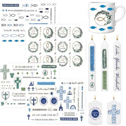 【Sie Erhalten】Sie erhalten 4 kommunion kerzen sticker in verschiedenen mustern, jedes tattoo ist einzigartig und schön für den einsatz in der taufe und kommunion gelegenheiten; die schönen muster und künstlerischen designs machen jede taufe und kommunion feierlicher und schöner, so dass die ganze veranstaltung mehr bedeutung. 【Unique Design】.Diese kommunion kerzen aufkleber sind reichlich gemustert mit fischen, kreuzen, eukalyptusblättern und mehr. Die verschiedenen aufkleber für die kommunionkerze sind in verschiedenen größen erhältlich und können je nach bedarf kombiniert oder zugeschnitten werden, damit sie auf verschiedene größen und arten von kerzen passen. 【Einfach Zu Verwenden】Schneiden sie das gewünschte kommunion kerzen sticker muster aus. Legen sie den aufkleber für ca. 5 sekunden in eine schüssel mit wasser, um ihn einzuweichen. Nehmen sie das muster vorsichtig aus dem wasser und drehen sie es auf die kerze. Warten sie 10 sekunden, bis das muster auf die kerze übertragen ist, und ziehen sie dann die schutzfolie ab. 【Handgemachte Kerze】Es ist ein wunderbares gefühl, seine eigenen geschenke zu machen. Platzieren sie diese kommunion kerzen sticker auf kerzen oder auch sticker auf tassen für eine stimmungsvolle atmosphäre. Sie sind perfekt für geschenkideen und kleine souvenirs. 【Mehrere Anlässe】Ideale dekoration für urlaubsdekorationen, taufe, kommunion und konfirmation. Sie können die kommunion-kerzen-aufkleber auch auf ihr handy, ihre tasse oder alles andere kleben, was sie mögen. Eine vielzahl von verschiedenen formen, mustern und farben zeigen perfekt die atmosphäre der szene.