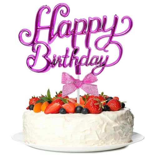 OEEYYT Happy Birthday Tortendeko Happy Birthday Cake Topper Kunststoff Tortendeko Geburtstag Kuchen Deko Mit Schleife (Lila)