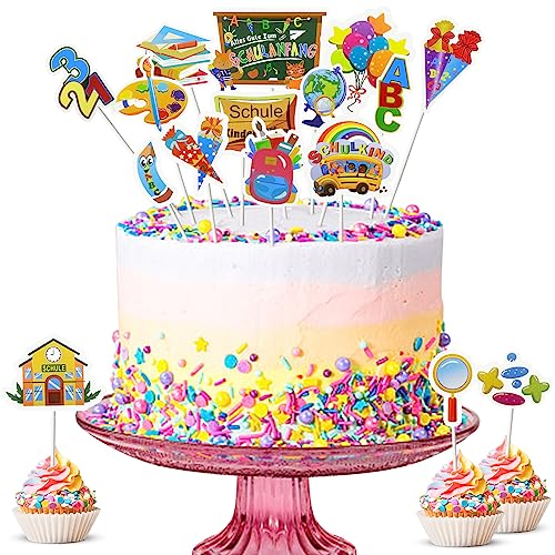 Tortendeko Einschulung, Kuchendeko Schulanfang für Schulkind Mädchen Junge, ABC 123 Schultüte Kuchendeko, Schulanfang Cupcake Topper, Schuleinführung 1. Schultag Schulstart Party Deko